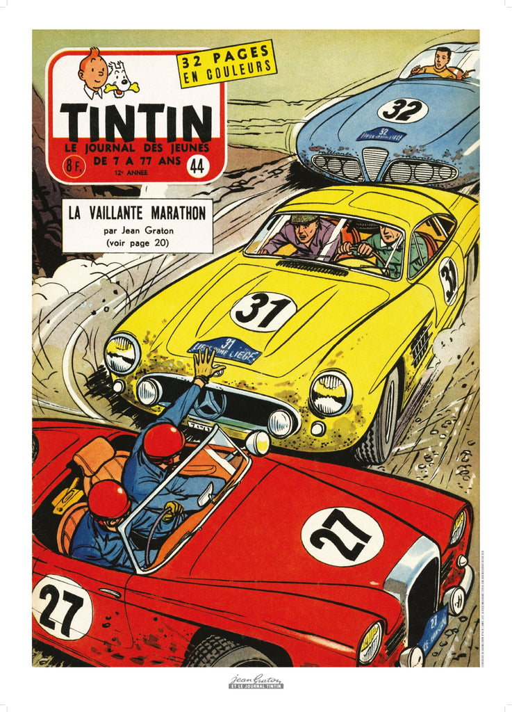 MICHEL VAILLANT: LA VAILLANTE MARATHON (couverture Journal de Tintin 1957 N°44) - affiche 50 x 70 cm