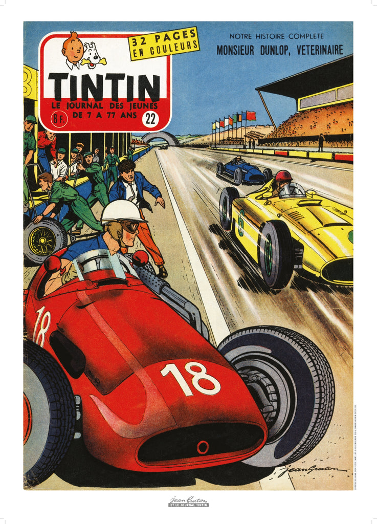 MICHEL VAILLANT: MR. DUNLOP VETERINAIRE (couverture Journal de Tintin 1957 N°22) - affiche 50 x 70 cm