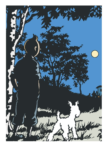 Très beau cahier A4 avec une reliure agrafée et du papier quadrillé. La couverture est décorée par un visuel de Tintin et Milou dans la nuit.