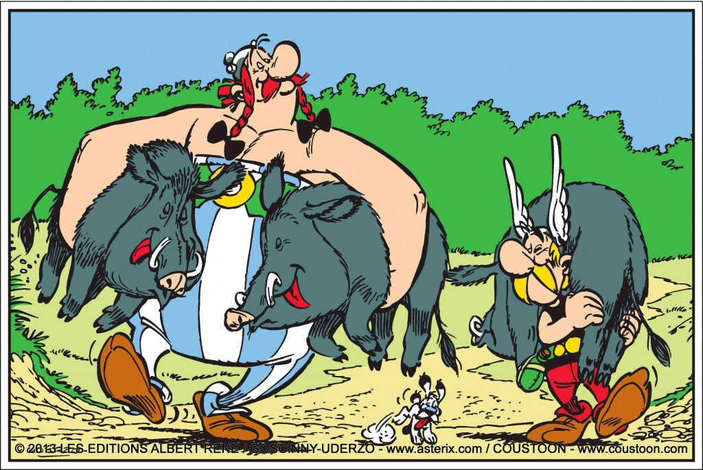 Magnifique image symbolique tirée de l'album Obélix et compagnie: le rare moment où Astérix et Obélix se rendent compte que travailler pour les romains (en leur livrant des menhirs) apporte bien plus de soucis, de querelles, etc... qu'une bonne balade en forêt entre amis...