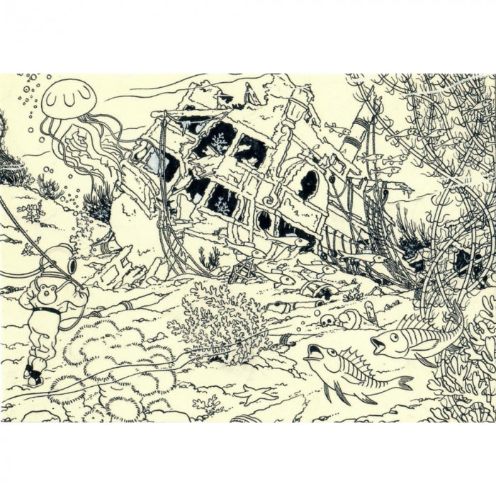 Carte Postale Tintin Plongée La Licorne Fac-Similé Moulinsart 2017