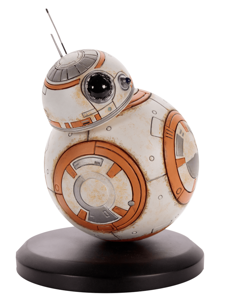 BB-8 est un droïde astromécano de série BB de couleur blanche, orange et grise. Comme tous les droïdes de sa série, il a la particularité de se déplacer en roulant.