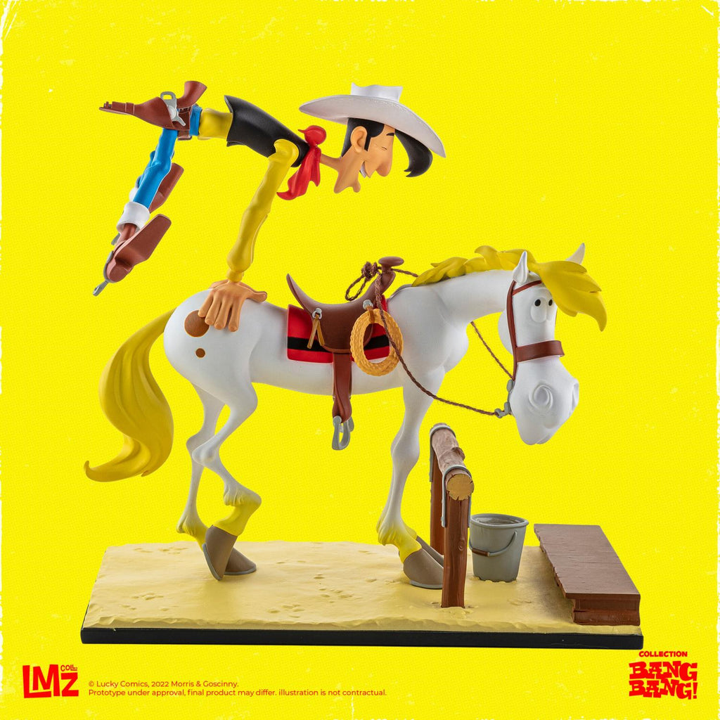Cette statuette de Lucky Luke et Jolly Jumper inaugure la nouvelle collection Bang Bang! consacrée aux personnages créés par Morris & Goscinny.