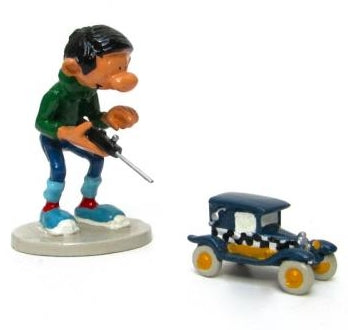 GASTON LAGAFFE: GASTON ET SON TAXI RADIOCOMMANDE - figurine métal 7.5 cm