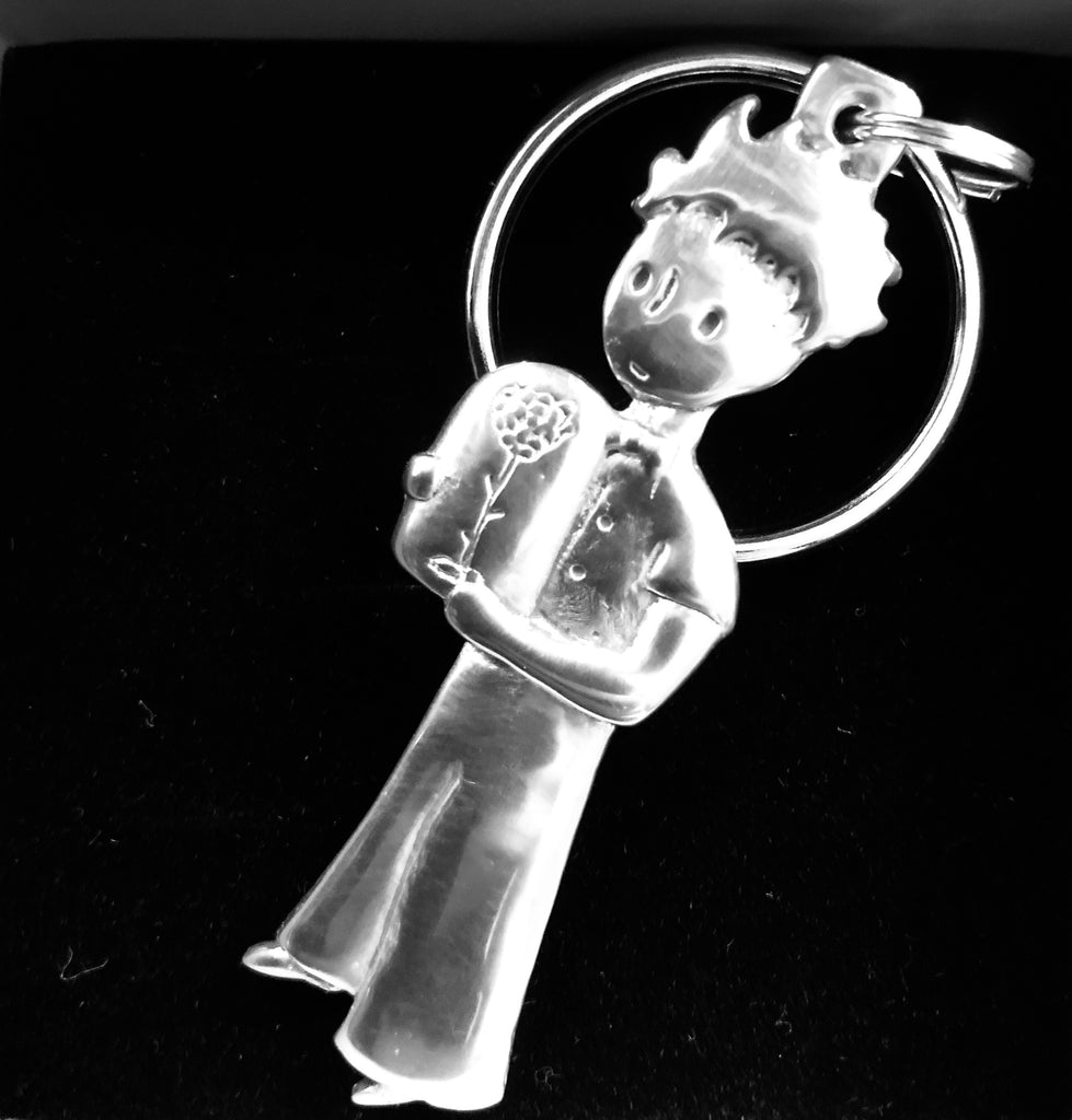 LE PETIT PRINCE: LE PETIT PRINCE ET LA ROSE - porte-clés en étain 6 cm