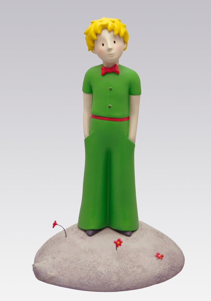 Les sculpteurs d'Attakus vous offrent leur interprétation du Petit Prince se tenant debout sur sa planète, petit bonhomme lunaire et mystérieux avec son noeud papillon rouge et sa chevelure dorée.