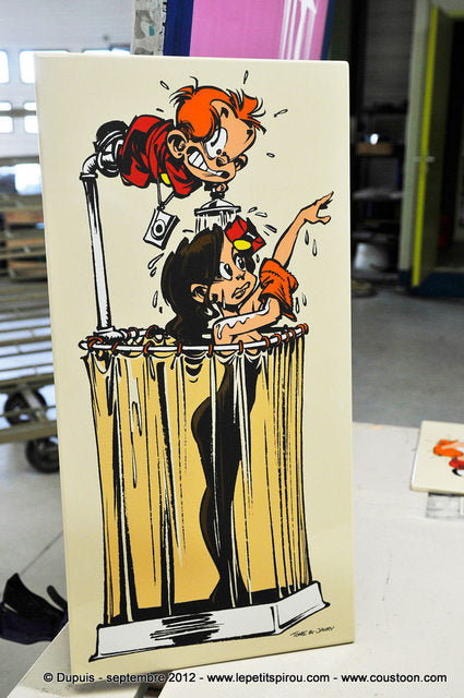 LE PETIT SPIROU: plaque émaillée 35.3 x 70.8 cm