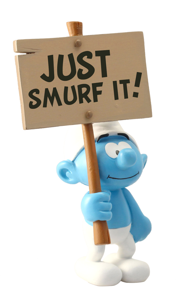 LES SCHTROUMPFS: SCHTROUMPF avec PANCARTE "JUST SMURF IT!" - statuette résine 12 cm