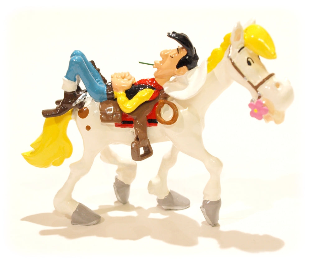 LUCKY LUKE: LUCKY LUKE DORMANT SUR JOLLY JUMPER - figurine métal 11 cm