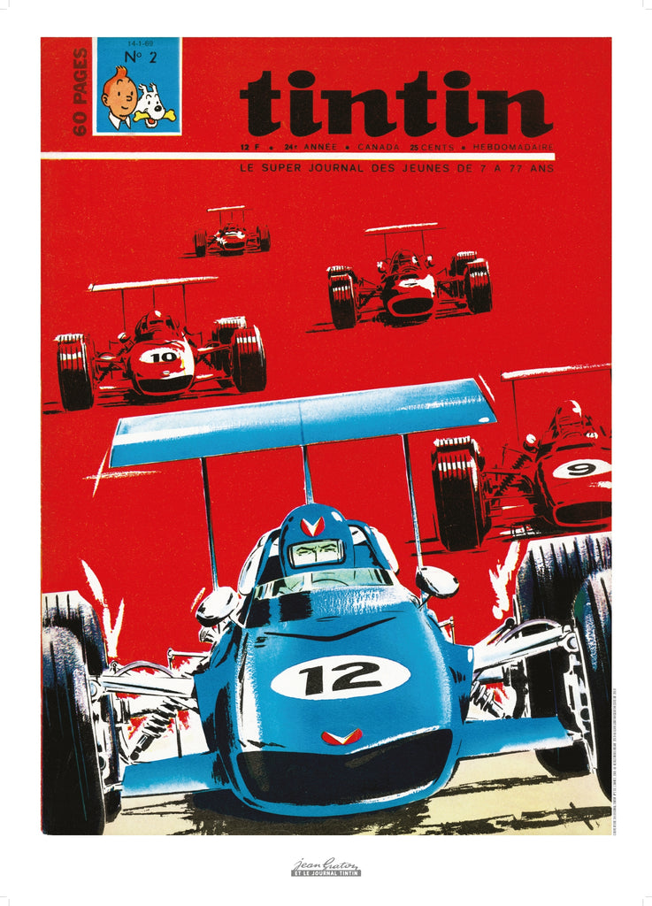 michel vaillant de lhuile sur la piste couverture journal de tintin 1969 n 02 affiche 50 x 70 cm