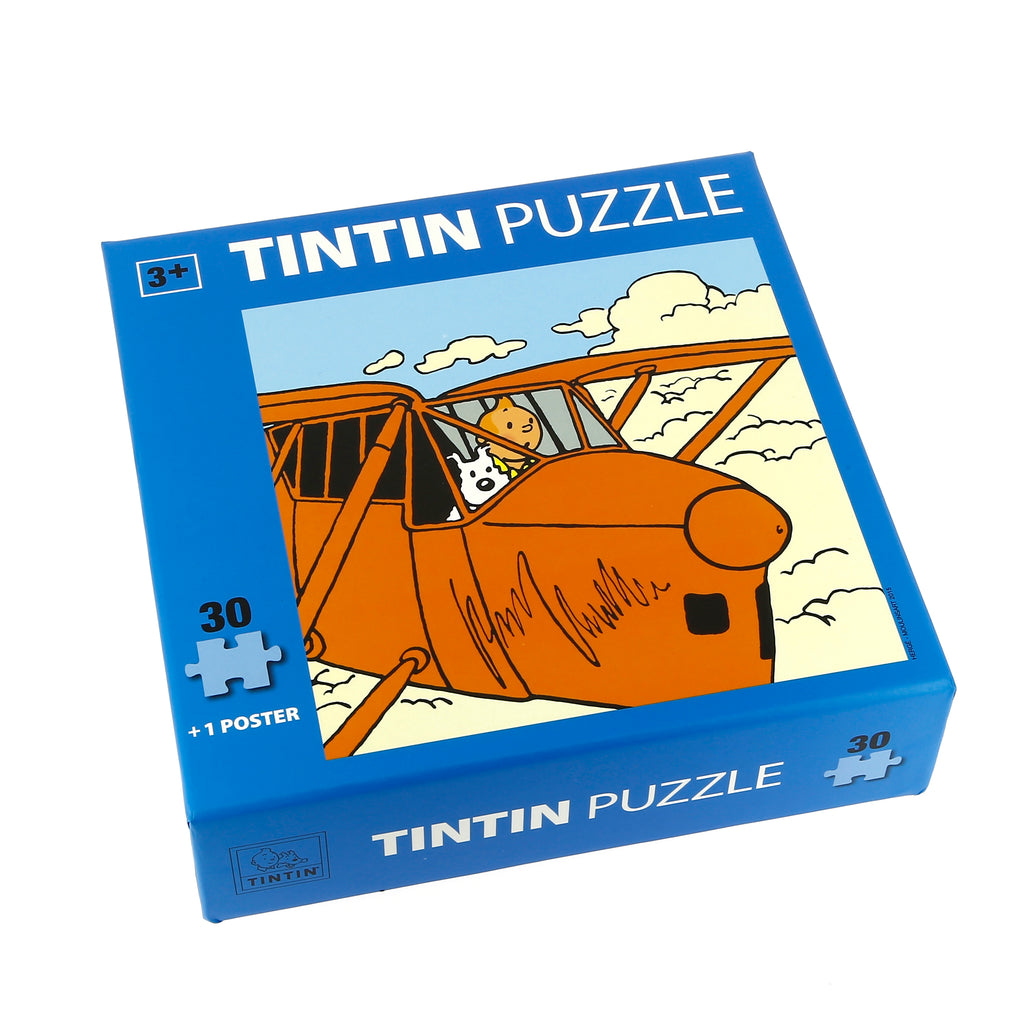 Puzzle Tintin de 30 pièces au format 30 x 30 cm accompagné d'un poster.