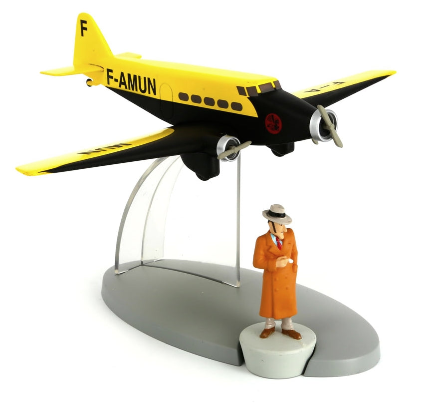 TINTIN: EN AVION TINTIN #28, BIPLAN D'ACROBATIES "L'Ile Noire" & DUPONT - modèle réduit + figurine