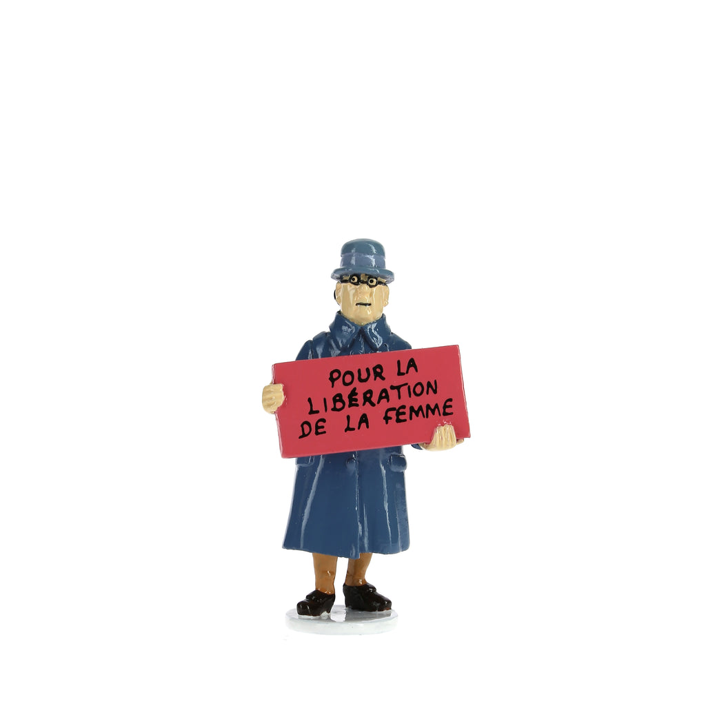 TINTIN: LA CARTE DE VOEUX 1972, IRMA "POUR LA LIBERATION DE LA FEMME" - figurine métal 5.8 cm