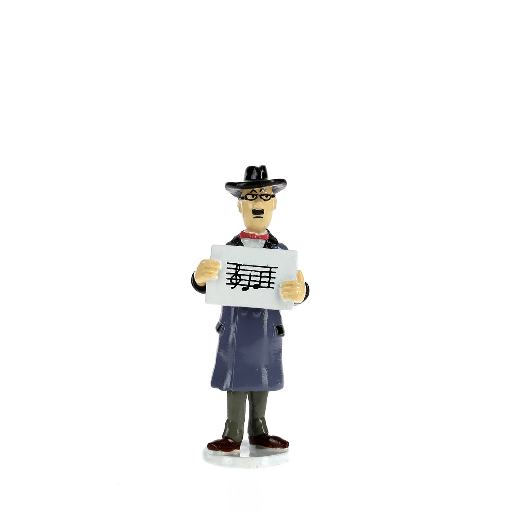 TINTIN: LA CARTE DE VOEUX 1972, WAGNER "NOTE DE MUSIQUE" - figurine métal 5.7 cm